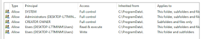 The ProgramData folder is interesting, because sometimes folders might be write-able by a user.